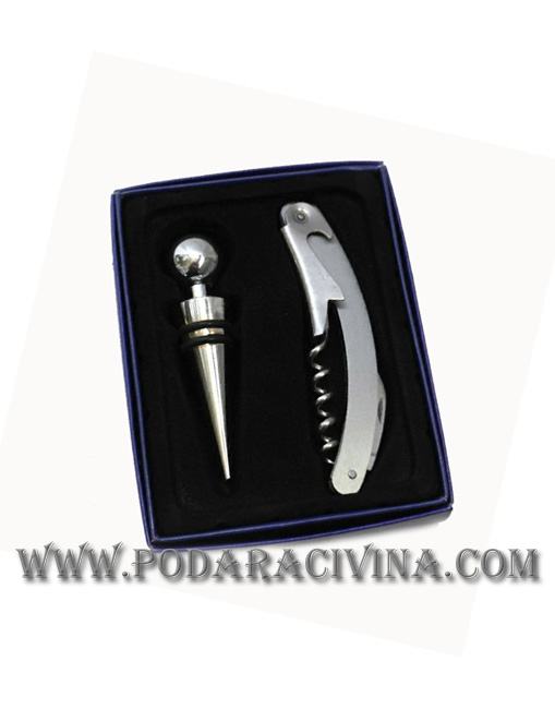 Подаръчния комплект съдържа: тирбушон и тапа за бутилка.